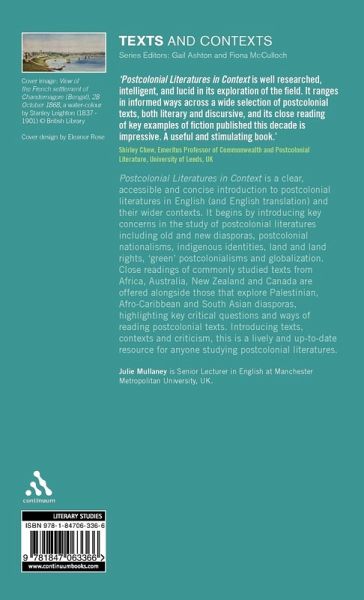 Postcolonial Literatures in Context is a clear, accessible and concise introduction to postcolonial literatures in English (and English translation) and their wider contexts. It begins by introducing key issues involved in the study of postcolonial literature including old and new diasporas, postcolonial nationalisms, indigenous identities and politics and globalization. Close readings of commonly studied texts from and about Africa, Australia, Canada, Palestine and South Asian diasporas highlight critical questions and ways of reading postcolonial texts. A chapter on afterlives and adaptations explores a range of wider cultural texts including film, non-fiction and art. The final section introduces key critical interpretations from different perspectives including diaspora theory, feminism, indigeneity and the postcolony. 'Review, Reading and Research' sections give suggestions for further reading, discussion and research. Introducing texts, contexts and criticism, this is a lively and up-to-date resource for anyone studying postcolonial literatures.