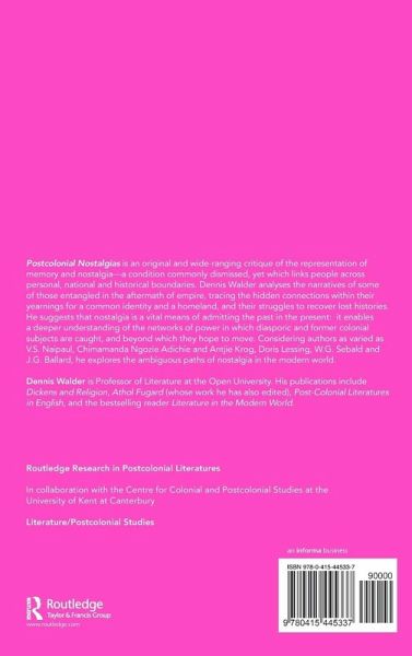 This book offers an original and informed critique of a widespread, yet often misunderstood, condition - nostalgia, a pervasive human emotion connecting people across national, historical, and personal boundaries. Walder analyses the writings of some of those entangled in the aftermath of empire, tracing the hidden connections underlying their yearnings for a common identity and a homeland, and their struggles to recover their histories. Through a series of comparative reflections upon the representation in literary and related cultural forms of memory, he shows how admitting the past into the present through nostalgia enables former colonial or diasporic subjects to gain a deeper understanding of the networks of power within which they are caught in the modern world, and beyond which it may yet be possible to move. Considering authors as varied as V.S Naipaul, J.G. Ballard, Doris Lessing, W.G. Sebald, and Chimamanda Ngozi Adichie, as well as versions of "Bushman" song, Walder pursues the often wayward, ambiguous paths of nostalgia as it has been represented beyond, but also within, Europe, so as to identify some of those processes of communal and individual experience that constitute the present and, by implication, the future.