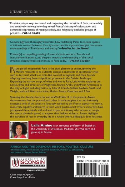 In the global imagination, Paris is the city's glamorous center, ignoring the Muslim residents in its outskirts except in moments of spectacular crisis such as terrorist attacks or riots. But colonial immigrants and their French offspring have been a significant presence in the Parisian landscape since the 1940s. Expanding the narrow script of what and who is Paris, Laila Amine explores the novels, films, and street art of Maghrebis, Franco-Arabs, and African Americans in the City of Light, including fiction by Charef, Chraïbi, Sebbar, Baldwin, Smith, and Wright, and such films as La haine, Made in France, Chouchou, and A Son. Spanning the decades from the post–World War II era to the present day, Amine demonstrates that the postcolonial other is both peripheral to and intimately entangled with all the ideals so famously evoked by the French capital—romance, modernity, equality, and liberty. In their work, postcolonial writers and artists have juxtaposed these ideals with colonial tropes of intimacy (the interracial couple, the harem, the Arab queer) to expose their hidden violence. Amine highlights the intrusion of race in everyday life in a nation where, officially, it does not exist.
