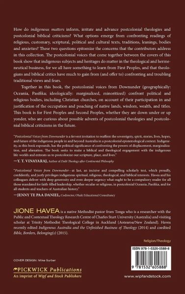 How do indigenous matters inform, irritate and advance postcolonial theologies and postcolonial biblical criticisms? What options emerge from confronting readings of religious, customary, scriptural, political and cultural texts, traditions, leanings, bodies and anxieties? These two questions epitomize the concerns that the contributors address in this collection. The postcolonial voices that come together between the covers of this book show that indigenous subjects and heritages do matter in the theological and hermeneutical business, for we all have something to learn from First Peoples, and that theologians and biblical critics have much to gain from (and offer to) confronting and troubling traditional views and fears. Together in this book, the postcolonial voices from Downunder (geographically: Oceania, Pasifika; ideologically: marginalized, minoritized) confront political and religious bodies, including Christian churches, on account of their participation in and justification of the occupation and poaching of native lands, wisdom, wealth, and titles. This book is for First Peoples and Second Peoples, whether they are down under or up yonder, who are curious about possible advents of postcolonial theologies and postcolonial biblical criticisms in the future. ""Postcolonial Voices from Downunder is a fervent invitation to reaffirm the sovereignty, spirit, stories, lives, hopes, and future of the indigenous people in and beyond Australia in a postcolonial epistemological context. Indigeneity, as this book expounds, has the political significance of confronting the powers of displacement, marginalization, and alienation. The book seeks to make a biblical and theological engagement with the indigenous life-worlds and entreats us to postcolonize our scripture, place, and lives."" --Y. T. Vinayaraj, Author of Dalit Theology after Continental Philosophy ""Postcolonial Voices from Downunder--at last, an incisive and compelling scholarly text, which proudly, confidently, and justly privileges indigenous spiritual, religious, theological, and biblical interests. Havea and his colleagues deliver with deep generosity and even deeper urgency what ought to be a compulsory reader for all those mandated for faith-filled leadership, whether secular or religious, in postcolonial Oceania, Pasefika, and for all students and teachers of Australian history."" --Jenny Te Paa Daniel, Co-Director, Ohaki Educational Consultancy; renowned activist Anglican theologian, Auckland, New Zealand Jione Havea is a native Methodist pastor from Tonga who is a researcher with the Public and Contextual Theology Research Centre of Charles Sturt University (Australia) and visiting scholar at Trinity Methodist Theological College in Auckland (Aotearoa/New Zealand). Havea recently edited Indigenous Australia and the Unfinished Business of Theology (2014) and coedited Bible, Borders, Belonging(s) (2015).