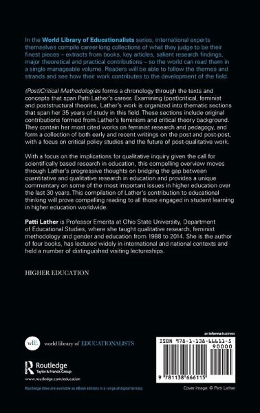 In the World Library of Educationalists series, international experts themselves compile career-long collections of what they judge to be their finest pieces - extracts from books, key articles, salient research findings, major theoretical and practical contributions - so the world can read them in a single manageable volume. Readers will be able to follow the themes and strands and see how their work contributes to the development of the field. (Post)Critical Methodologies forms a chronology through the texts and concepts that span Patti Lather's career.