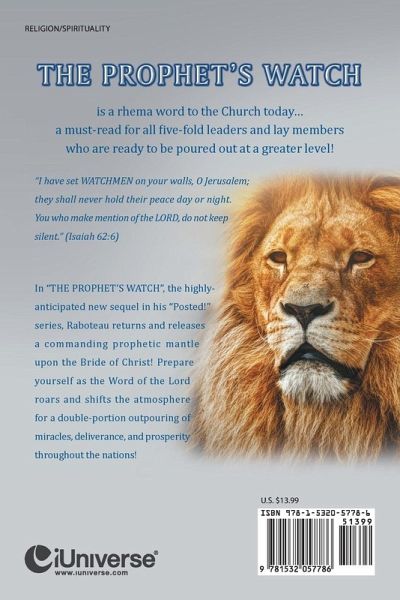 "I have set WATCHMEN on your walls, O Jerusalem; they shall never hold their peace day or night. You who make mention of the LORD, do not keep silent." (Isaiah 62:6) In "THE PROPHET'S WATCH", the highly-anticipated new sequel in his "Posted!" series, Raboteau returns and releases a commanding prophetic mantle upon the Bride of Christ! Prepare yourself as the Word of the Lord roars and shifts the atmosphere for a double-portion outpouring of miracles, deliverance, and prosperity throughout the nations!