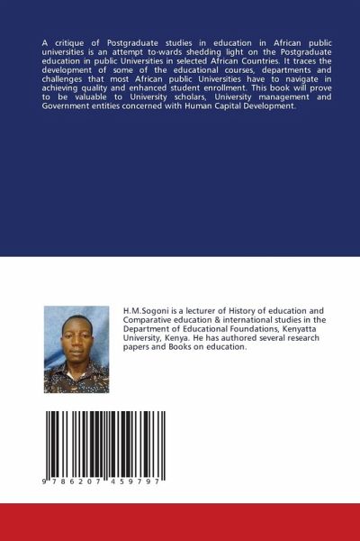 A critique of Postgraduate studies in education in African public universities is an attempt to-wards shedding light on the Postgraduate education in public Universities in selected African Countries. It traces the development of some of the educational courses, departments and challenges that most African public Universities have to navigate in achieving quality and enhanced student enrollment. This book will prove to be valuable to University scholars, University management and Government entities concerned with Human Capital Development.