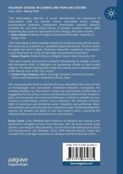 "Collectively, these essays provide a marvelous starting point for the continued exploration of the significant work of Joan Slonczewski ... . The fiction of Joan Slonczewski ... merits continued academic study as well as incorporation into undergraduate and graduate courses. Posthuman Biopolitics is an excellent collection. It should be in every academic library ... ." (Bruce Lindsley Rockwood, SFRA Review, Vol. 52 (1), 2022)