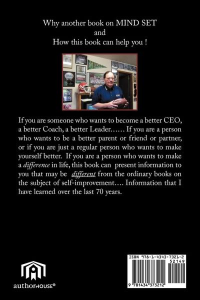 Why another book on MIND SET and How this book can help you ! If you are someone who wants to become a better CEO, a better Coach, a better Leader.. If you are a person who wants to be a better parent or friend or partner, or if you are just a regular person who wants to make yourself better. If you are a person who wants to make a difference in life, this book can present information to you that may be different from the ordinary books on the subject of self-improvement.. Information that I have learned over the last 70 years.