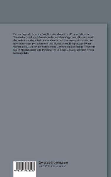 Der Band beinhaltet literaturwissenschaftliche Aufsätze zu Texten der (postkolonialen) deutschsprachigen Gegenwartsliteratur sowie theoretisch angelegte Beiträge zu Gewalt und Erinnerungsdiskursen. Aus interkulturellen, didaktischen und postkolonialen Blickpunkten heraus werden darin neue Reflexionsimpulse, Möglichkeiten und Zukunftsperspektiven herausgestellt, die sich der postkolonial ausgerichteten Germanistik nicht zuletzt vor dem Hintergrund globaler soziopolitischer Krisen erschließen.