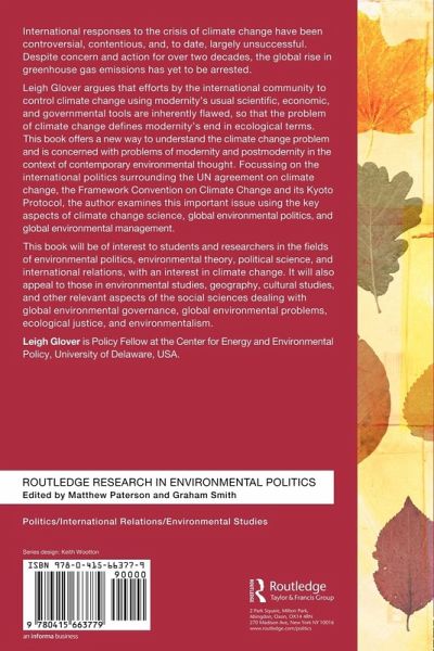 A much-needed analysis of international climate change politics as a key issue of modernity and in the context of environmentalism. Leigh Glover presents a new way to understand the climate change problem and is concerned with problems of modernity and postmodernity in the context of contemporary environmental thought. Focusing on the international politics surrounding the UN agreement of climate change, the Framework Convention on Climate Change and its Kyoto Protocol, Glover examines the issue using the key aspects of climate change science, global environmental politics, and global environmental management.