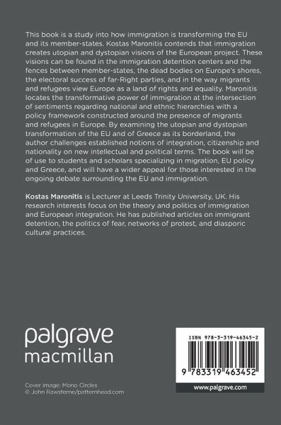 This book is a study into how immigration is transforming the EU and its member-states. Kostas Maronitis contends that immigration creates utopian and dystopian visions of the European project. These visions can be found in the immigration detention centers and the fences between member-states, the dead bodies on Europe's shores, the electoral success of far-Right parties, and in the way migrants and refugees view Europe as a land of rights and equality. Maronitis locates the transformative power of immigration at the intersection of sentiments regarding national and ethnic hierarchies with a policy framework constructed around the presence of migrants and refugees in Europe. By examining the utopian and dystopian transformation of the EU and of Greece as its borderland, the author challenges established notions of integration, citizenship and nationality on new intellectual and political terms. The book will be of use to students and scholars specializing in migration, EU policyand Greece, and will have a wider appeal for those interested in the ongoing debate surrounding the EU and immigration.