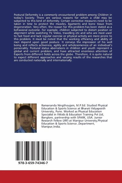 Postural Deformity is a commonly encountered problem among Children in today's Society. There are various reasons for which a child may be subjected to this kind of deformity. Certain corrective measures need to be taken in time to protect the muscles, ligaments and bone tissue from degeneration. Very often, the reason for this problem has been stated as a behavioral outcome. For example, children subjected to distort position or alignment while watching TV, Video, travelling etc and who are most used to fast food and lack regular exercise or physical activity are more prone to this problem. It must be noted that the working efficiency and ability of men depend upon good posture. It conveys the impression of his well being and reflects activeness, agility and wholesomeness of an individual's personality. Postural status aberrations in children and youth represent a global and current problem, and have attracted enormous attention of Experts from different fields across the globe.Therefore, it is quite natural to expect different approaches and varying results of the researches that are conducted nationally and internationally.