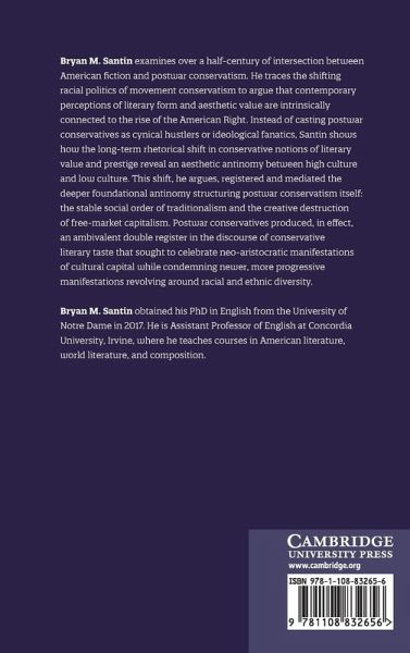 Introduction; 1. US Literature and the Modern Right at Midcentury: Conservative Modernism Race and the Cold War 1945-1960; 2. The Conservative Movement's Foundational Fictions: Flannery O'Connor Ayn Rand and the Evolving Literary Forms of Conservatism 1950-1964; 3. The Strongbox of Custom: James Baldwin Norman Mailer and the Shifting Racial Logic of Postwar Conservatism 1955-1972; 4. Movement Conservatism Neoconservatism and the New Right: Saul Bellow and Thomas Pynchon in the Age of Reagan 1970-1990; 5. The American Novel and the Reagan Revolution: The Ascent of Toni Morrison in the Age of Conservative Pop Fiction 1987-2000; Coda: The Curious (Conservative) Case of Marilynne Robinson.