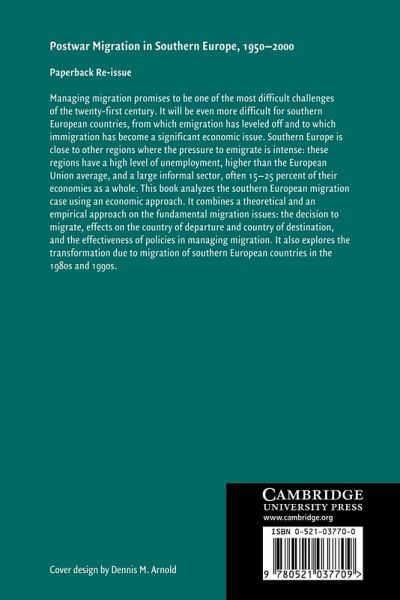 Managing migration promises to be one of the most difficult challenges of the twenty-first century. It will be even more difficult for south European countries, from which emigration has levelled off and to which immigration has become a significant economic issue. Southern Europe is close to other regions where the pressure to emigrate is intense: these regions have a high level of unemployment, above the European Union average, and a large informal sector, often 15–25 per cent of their economies as a whole. This book analyses the southern European migration case using an economic approach. It combines a theoretical and an empirical approach on the fundamental migration issues - the decision to migrate, effects on the country of departure and country of destination, and the effectiveness of policies in managing migration. It also explores the transformation due to migration of southern European countries in the 1980s and 1990s.