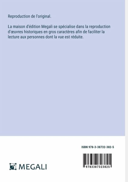 Reproduction de l'original. La maison d'édition Megali se spécialise dans la reproduction d'¿uvres historiques en gros caractères afin de faciliter la lecture aux personnes dont la vue est réduite.