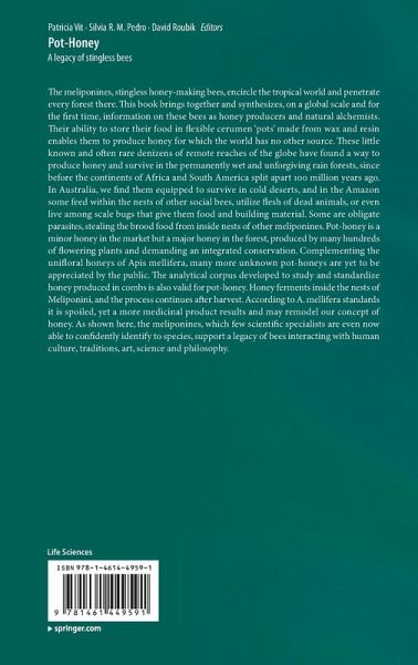 The meliponines, stingless honey-making bees, encircle the tropical world and penetrate every forest there. This book brings together and synthesizes, on a global scale and for the first time, information on these bees as honey producers and natural alchemists. Their ability to store their food in flexible cerumen pots made from wax and resin enables them to produce honey for which the world has no other source. These little known and often rare denizens of remote reaches of the globe have found a way to produce honey and survive in the permanently wet and unforgiving rain forests, since before the continents of Africa and South America split apart 100 million years ago. In Australia, we find them equipped to survive in cold deserts, and in the Amazon some feed within the nests of other social bees, utilize flesh of dead animals, or even live among scale bugs that give them food and building material. Some are obligate parasites, stealing the brood food from inside nests of othermeliponines. Pot-honey is a minor honey in the market but a major honey in the forest, produced by many hundreds of flowering plants and demanding integrated conservation. Complementing the unifloral honeys of Apis mellifera, many more pot-honeys are yet to be appreciated by the public. The analytical corpus developed to study and standardize honey produced in combs is also valid for pot-honey. Honey ferments inside the nests of Meliponini, and the process continues after harvest. According to A. mellifera standards it is spoiled, yet a more medicinal product results and may remodel our concept of honey. As shown here, the meliponines, support a legacy of bees interacting with human culture, traditions, art, science and philosophy.