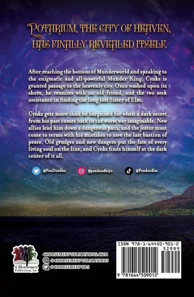 Potarium, the city of heaven, has finally revealed itself. After reaching the bottom of Munderworld and speaking to the enigmatic and all-powerful Munder King, Cynkz is granted passage to the heavenly city. Once washed upon its shore, he reunites with an old friend, and the two seek assistance in finding the long lost Sister of Elm. Cynkz gets more than he bargained for when a dark secret from his past comes back in the worst way imaginable. New allies lead him down a dangerous path, and the jester must come to terms with his mistakes to save the last bastion of peace. Old grudges and new dangers put the fate of every living soul on the line, and Cynkz finds himself at the dark center of it all.