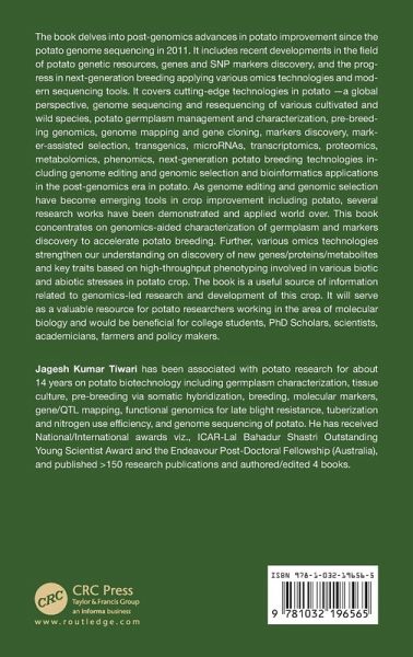 The book delves into post-genomics advances in potato improvement since the potato genome sequencing in 2011. It includes recent developments in the field of potato genetic resources, genes and SNP markers discovery, and the progress in next-generation breeding applying various omics technologies and modern sequencing tools. It covers cutting-edge technologies in potato - a global perspective, genome sequencing and resequencing of various cultivated and wild species, potato germplasm management and characterization, prebreeding genomics, genome mapping and gene cloning, markers discovery, marker-assisted selection, transgenics, microRNAs, transcriptomics, proteomics, metabolomics, phenomics, next-generation potato breeding technologies including genome editing and genomic selection and bioinformatics applications in the post-genomics era in potato. As genome editing and genomic selection have become emerging tools in crop improvement including potato, several research works have been demonstrated and applied world over. This book concentrates on genomics-aided characterization of germplasm and markers discovery to accelerate potato breeding. Further, various omics technologies strengthen our understanding on discovery of new genes/proteins/metabolites and key traits based on high-throughput phenotyping involved in various biotic and abiotic stresses in potato crop. The book is a useful source of information related to genomics-led research and development of this crop. It will serve as a valuable resource for potato researchers working in the area of molecular biology and would be beneficial for college students, PhD scholars, scientists, academicians, farmers and policy makers.