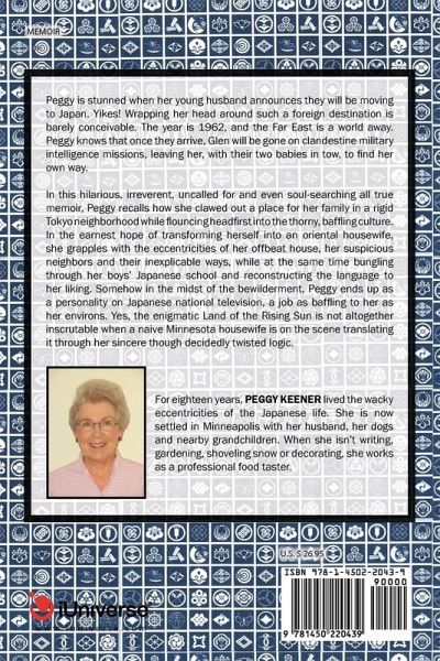 In the memoir Potato in a Rice Bowl, Peggy Keener shares her wacky misadventures as a sincere-though misguided-Minnesota housewife struggling to create normalcy for her family while living in Japan during the 1960s. Through charming vignettes, Peggy takes a look back at her bewildering foray into the Japanese culture after her husband accepts a military assignment in a country thousands of miles away from the small prairie town of Austin, Minnesota, where she was born and raised. The mother of three boys, Peggy chronicles how she managed to settle her disoriented family and flounce headfirst into the thorny, baffling culture while her husband was miles away on military missions. As she bungles through her boys' Japanese school, grapples with the eccentricities of her home and neighbors, and reconstructs the language to her liking, she somehow ends up as a personality on Japanese national television-all with the earnest hope of melding with her new country. In this humorous, irreverent, and even soul-searching collection of anecdotes, Peggy provides an entertaining glimpse into the enigmatic Land of the Rising Sun.