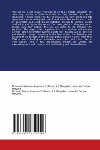 Potatoes are a well-known vegetable to all of us. Potato cultivation has been very popular in India form the last few decades. But potato production is being hampered due to diseases like early blight and late blight which are increasing the cost of production. The aim here is to build an automated and rapid disease detection process to increase potato production and digitize the system. Our main goal is to diagnose potato disease using leaf pictures that we are going to do through CNN algorithm. This paper offers a picture that is processing, and machine learning based automated systems potato leaf diseases will be detected and classified. Image processing is the best option for detecting and analysing these diseases. In this analysis, picture division is done; more than 2000 pictures of healthy and unhealthy potato's leaf, which are collected from Kaggle, and a few pre-prepared models are utilized for acknowledgment and characterization of healthy and diseased leaves.