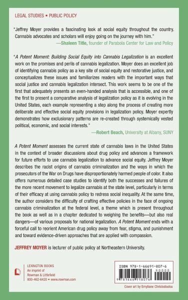 A Potent Moment assesses the current state of cannabis laws in the United States in the context of broader discussions about drug policy and advances a framework for future efforts to use cannabis legalization to advance social equity. It describes the racist origins of cannabis criminalization and the ways in which the prosecutors of the War on Drugs have disproportionately harmed people of color. It also offers numerous detailed case studies to identify both the successes and failures of the more recent movement to legalize cannabis at the state level, particularly in terms of their efficacy at using cannabis policy to redress social inequality. At the same time, the author considers the difficulty of crafting effective policies in the face of ongoing cannabis criminalization at the federal level, a theme which is present throughout the book as well as in a chapter dedicated to weighing the benefits-but also real dangers-of various proposals for national legalization. A Potent Moment ends with a forceful call to reorient American drug policy away from fear, stigma, and punishment and toward evidence-driven approaches that are applied with compassion.