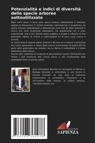Negli ultimi tempi, il tema delle specie arboree sottoutilizzate è diventato oggetto di discussione in ambito nazionale, internazionale e accademico. Le specie arboree sottoutilizzate o abbandonate sono tutti gli alberi presenti in natura che sono localmente abbondanti, ma globalmente rari e sono sottovalutati, cioè il loro attuale valore pubblico e privato è inferiore al loro potenziale. Inoltre, la ricerca e l'informazione su di esse sono scarse o assenti. La conoscenza di queste specie arboree e dei loro usi è spesso sconosciuta alle nuove generazioni a causa della scarsa trasmissione di questi dati da parte delle generazioni più anziane, da cui deriva il sottoutilizzo o il totale abbandono delle stesse. Questo libro sottolinea la necessità di documentare queste informazioni per fornire i dati necessari alla ricerca futura e allo sfruttamento delle potenzialità inerti di queste specie.
