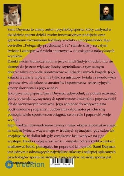 Sami Duymaz to znany autor i psycholog sportu, który zaslynal w dziedzinie sportu dzieki swoim innowacyjnym podejsciu oraz glebokiemu zrozumieniu ludzkiej psychiki i emocjonalnosci. Jego bestseller "Potega sily psychicznej 1 i 2" stal sie znany na calym swiecie i zainspirowal wielu sportowców do osiagania najwyzszych wyników.Dzieki tlumaczeniom na kilka jezyków udalo mu sie dotrzec do jeszcze wiekszej liczby czytelników, a tym samym dotrzec takze do wielu sportowców w róznych krajach. Jego ksiazki wywarly wplyw nie tylko na mistrzów swiata i zawodowych sportowców, ale takze na amatorów i sportowców rekreacyjnych, którzy skorzystali z jego wiedzy.Jako psycholog sportu Sami Duymaz udowodnil, ze potrafi rozwinac pelny potencjal wyczynowych sportowców i mentalnie poprowadzic ich do szczytowych wyników. Jego zdolnosc do wplywania na podswiadome programy i budowania odpornosci psychicznej pomogla wielu sportowcom osiagnac swoje cele i poprawic swoje wyniki.Jego wiedza i doswiadczenie czynia z niego eksperta poszukiwanego na calym swiecie, wzywanego w trudnych sytuacjach, gdy czlowiek znajduje sie w dolku lub gdy zrzadzenie losu wplywa na jego wystepy. Dzieki swojej wrazliwosci i empatii potrafi szybko czytac i analizowac ludzi, pomagajac im poprawic ich wyniki. Sami Duymaz jest jednym z odnoszacych najwieksze sukcesy i najlepiej oplacanych psychologów sportu na swiecie, a jego wplyw na swiat sportu jest niezaprzeczalny.