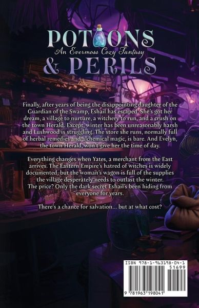 Finally, after years of being the disappointing daughter of the Guardian of the Swamp, Eshail has escaped. She's got her dream, a village to nurture, a witchery to run, and a crush on the town Herald. Except, winter has been unreasonably harsh and Lushwood is struggling. The store she runs, normally full of herbal remedies and alchemical magic, is bare. And Evelyn, the town Herald, won't give her the time of day.Everything changes when Yates, a merchant from the East arrives. The Eastern Empire's hatred of witches is widely documented, but the woman's wagon is full of the supplies the village desperately needs to outlast the winter. The price? Only the dark secret Eshail's been hiding from everyone for years. There's a chance for salvation... but at what cost?