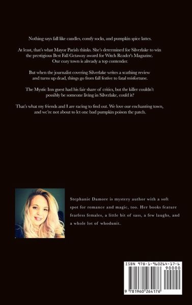 Nothing says fall like candles, comfy socks, and pumpkin spice lattes. At least, that's what Mayor Parish thinks. She's determined for Silverlake to win the prestigious Best Fall Getaway award for Witch Reader's Magazine. Our cozy town is already a top contender. But when the journalist covering Silverlake writes a scathing review and turns up dead, things go from fall festive to fatal misfortune. The Mystic Inn guest had his fair share of critics, but the killer couldn't possibly be someone living in Silverlake, could it? That's what my friends and I are racing to find out. We love our enchanting town, and we're not about to let one bad pumpkin poison the patch.