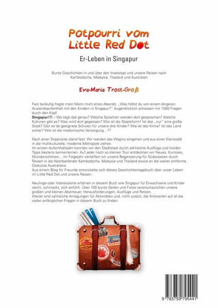 In diesem besonderen Familientagebuch erwartet Sie ein Strauß voller bunter, persönlicher Geschichten, die wir während unserer Auswanderung auf Zeit in und um den Inselstaat Singapur erlebt haben. Entdecken Sie mit uns die vielfältigen Facetten dieser aufregenden Metropole: von den köstlichen Aromen der lokalen Küche an den Hawker-Ständen bis hin zu den lebendigen Farben der verschiedenen Stadtviertel und der entspannenden Atmosphäre in den zahlreichen Naturschutzgebieten und Parkanlagen. Auf über 100 bunten Seiten teilen wir Episoden, die zum Schmunzeln und Staunen anregen, und bereichern diese mit Hintergründen und interessanten Fakten. Lernen Sie die Sitten und Gebräuche der multiethnischen Bevölkerung kennen und entdecken Sie die exotische Flora und Fauna sowie die beeindruckende Architektur der Lion City. Dieses Buch führt Sie nicht nur durch die populären Viertel wie Chinatown, Kampong Glam, dem Kolonialviertel, Little India und Sentosa, sondern auch zu versteckten Schmuckstücken wie Ang Mo Kio, Bukit Merah, Jurong West, Kranji oder Woodlands mit ihren typischen Eigenarten und Sehenswürdigkeiten. Durch unsere Streifzüge und Erlebnisse ergeben sich so zahlreiche Anregungen für Aktivitäten und Freizeitmöglichkeiten sowie praktische Alltagstipps für das Leben im Little Red Dot. Erfahren Sie in Potpourri vom Little Red Dot wie Singapur für Erwachsene und Kinder riecht, schmeckt, sich anfühlt! Als Zusatzmaterial finden Sie in diesem Buch Berichte über unsere spannenden Reisen, die wir von Singapur aus unternommen haben.