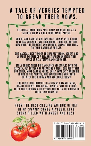 A tale of veggies tempted to break their vows. Fleeing a tumultuous past, Emily finds refuge at a kitchen job in a quiet countryside parish. Robert and Laurent are two best friends with a bond that has crossed lines throughout their history but now walk the straight and narrow, giving their lives to their parish as priests. One magical night under the harvest moon, Robert and Laurent experience a bizarre transformation: They wake up as a tomato and cucumber. Emily brings these ripe and juicy vegetables into the kitchen, but instead of preparing a meal, she uses them for other, more carnal needs. Emily awakens something inside of the priests, who switch back and forth between their human and vegetable forms. The three find themself in a steamy entanglement, unable to deny their primal desires. Will they fight their urges or break their vows and alter the course of their lives forever? From the best-selling author of Get In My Swamp comes a veggie love story filled with angst and lust.