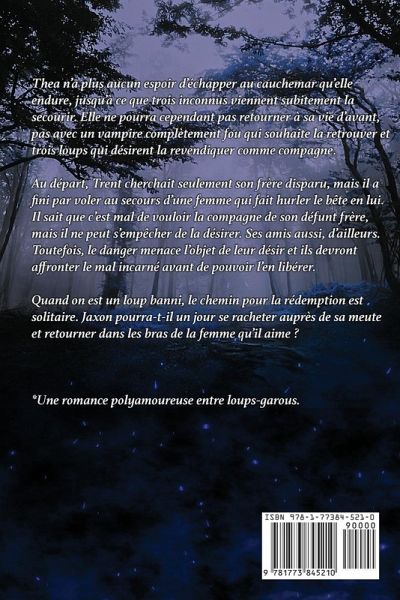 *Une romance polyamoureuse entre loups-garous. Thea n'a plus aucun espoir d'échapper au cauchemar qu'elle endure, jusqu'à ce que trois inconnus viennent subitement la secourir. Elle ne pourra cependant pas retourner à sa vie d'avant, pas avec un vampire complètement fou qui souhaite la retrouver et trois loups qui désirent la revendiquer comme compagne. Au départ, Trent cherchait seulement son frère disparu, mais il a fini par voler au secours d'une femme qui fait hurler le bête en lui. Il sait que c'est mal de vouloir la compagne de son défunt frère, mais il ne peut s'empêcher de la désirer. Ses amis aussi, d'ailleurs. Toutefois, le danger menace l'objet de leur désir et ils devront affronter le mal incarné avant de pouvoir l'en libérer. Quand on est un loup banni, le chemin pour la rédemption est solitaire. Jaxon pourra-t-il un jour se racheter auprès de sa meute et retourner dans les bras de la femme qu'il aime?