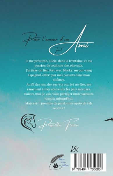 Je me présente, Lucie, dans la trentaine, et ma passion de toujours: Les chevaux.J'ai tissé un lien fort avec Blacky, un pur race espagnol, offert par mes parents dans mon enfance.Au fil des ans, des secrets ont été révélés, me ramenant à mes souvenirs les plus intenses. Suivez-moi, je vais vous partager mon parcours jusqu'à aujourd'hui.Mais est-il possible de pardonner après de tels secrets?