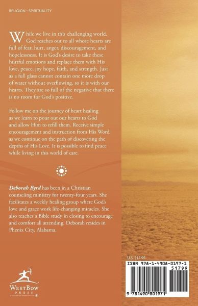 While we live in this challenging world, God reaches out to all whose hearts are full of fear, hurt, anger, discouragement, and hopelessness. It is God's desire to take these hurtful emotions and replace them with His love, peace, joy hope, faith, and strength. Just as a full glass cannot contain one more drop of water without overflowing, so it is with our hearts. They are so full of the negative that there is no room for God's positive. Follow me on the journey of heart healing as we learn to pour out our hearts to God and allow Him to refill them. Receive simple encouragement and instruction from His Word as we continue on the path of discovering the depths of His Love. It is possible to find peace while living in this world of care.