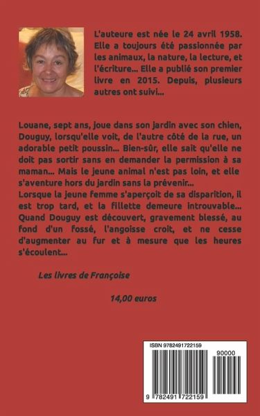 Louane, sept ans, joue dans le jardin avec son chien, Douguy, lorsqu'elle voit, de l'autre côté de la rue, un adorable petit poussin... Bien-sûr, elle sait qu'elle ne doit pas sortir sans en demander la permission à sa maman... Mais le jeune animal n'est pas loin, et elle s'aventure hors du jardin sans la prévenir... Lorsque la jeune femme s'aperçoit de sa disparition, il est trop tard, et la fillette demeure introuvable... Où est-elle ? Que lui est-il arrivé ? Lorsque Douguy est retrouvé dans un fossé, grièvement blessé, l'angoisse monte encore d'un cran, et continue à enfler au fur et à mesure des heures qui s'écoulent...
