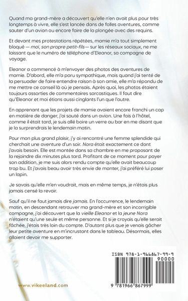 Vi Keeland, auteure de bests-sellers no 1 au classement du New York Times, nous livre un nouveau roman intégral, torride et sexy. Quand ma grand-mère a découvert qu'elle n'en avait plus pour très longtemps à vivre, elle s'est lancée dans de folles aventures, comme sauter d'un avion ou encore faire de la plongée avec des requins. Et devant mes protestations répétées, mamie m'a tout simplement bloqué ¿ moi, son propre petit-fils ¿ sur les réseaux sociaux, ne me laissant que le numéro de téléphone d'Eleanor, sa compagne de voyage. Eleanor a commencé à m'envoyer des photos des aventures de mamie. D'abord, elle m'a paru sympathique, mais quand j'ai tenté de la persuader de faire entendre raison à son amie, elle m'a répondu de me mettre ce conseil là où je pensais. Après quoi, les photos étaient toujours assorties de commentaires sarcastiques. Il faut dire qu'Eleanor et moi étions aussi cinglants l'un que l'autre. En apprenant que les projets de mamie avaient encore franchi un cap en matière de danger, j'ai sauté dans un avion. Une fois à l'hôtel, comme il était tard, je suis allé boire un verre au bar en me disant que je la surprendrais le lendemain matin. Pour mon plus grand plaisir, j'y ai rencontré une femme splendide qui cherchait une aventure d'un soir. Nora était exactement ce dont j'avais besoin. Elle est montée dans sa chambre en me proposant de la rejoindre dix minutes plus tard. Profitant de ce moment pour payer son addition, je me suis alors rendu compte qu'elle avait beaucoup trop bu. Et j'avais beau avoir très envie de monter, j'ai préféré lui poser un lapin. Je savais qu'elle m'en voudrait, mais en même temps, je n'étais plus jamais censé la revoir. Sauf qu'il ne faut jamais dire jamais. En l'occurrence, le lendemain matin, en descendant retrouver ma grand-mère et son incorrigible compagne, j'ai découvert que la vieille Eleanor et la jeune Nora n'étaient qu'une seule et même personne. Et si je croyais qu'elle serait fâchée, j'étais très loin du compte. D'autant plus que je venais gâcher leur petite aventure en m'incrustant dans le tableau. Désormais, elles allaient devoir me supporter.