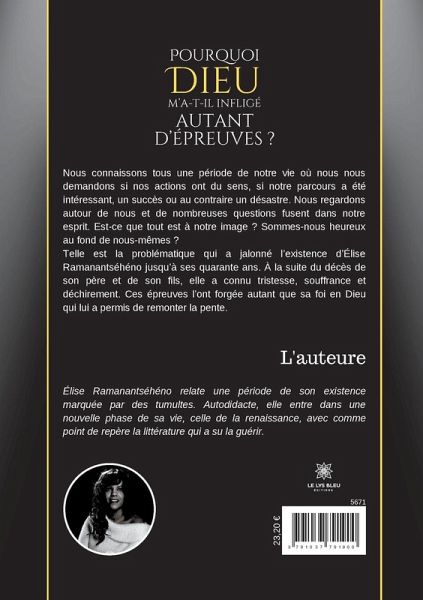 Nous connaissons tous une période de notre vie où nous nous demandons si nos actions ont du sens, si notre parcours a été intéressant, un succès ou au contraire un désastre. Nous regardons autour de nous et de nombreuses questions fusent dans notre esprit. Est-ce que tout est à notre image ? Sommes-nous heureux au fond de nous-mêmes ? Telle est la problématique qui a jalonné l¿existence d¿Élise Ramanantséhéno jusqüà ses quarante ans. À la suite du décès de son père et de son fils, elle a connu tristesse, souffrance et déchirement. Ces épreuves l¿ont forgée autant que sa foi en Dieu qui lui a permis de remonter la pente.
