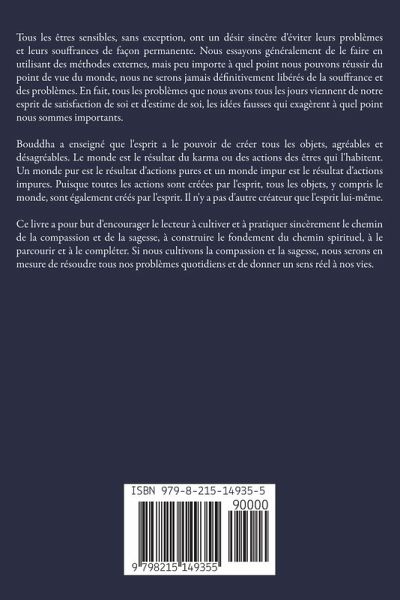 Tous les êtres sensibles, sans exception, ont un désir sincère d'éviter leurs problèmes et leurs souffrances de façon permanente. Nous essayons généralement de le faire en utilisant des méthodes externes, mais peu importe à quel point nous pouvons réussir du point de vue du monde, nous ne serons jamais définitivement libérés de la souffrance et des problèmes. En fait, tous les problèmes que nous avons tous les jours viennent de notre esprit de satisfaction de soi et d'estime de soi, les idées fausses qui exagèrent à quel point nous sommes importants. Bouddha a enseigné que l'esprit a le pouvoir de créer tous les objets, agréables et désagréables. Le monde est le résultat du karma ou des actions des êtres qui l'habitent. Un monde pur est le résultat d'actions pures et un monde impur est le résultat d'actions impures. Puisque toutes les actions sont créées par l'esprit, tous les objets, y compris le monde, sont également créés par l'esprit. Il n'y a pas d'autre créateur que l'esprit lui-même. Ce livre a pour but d'encourager le lecteur à cultiver et à pratiquer sincèrement le chemin de la compassion et de la sagesse, à construire le fondement du chemin spirituel, à le parcourir et à le compléter. Si nous cultivons la compassion et la sagesse, nous serons en mesure de résoudre tous nos problèmes quotidiens et de donner un sens réel à nos vies.