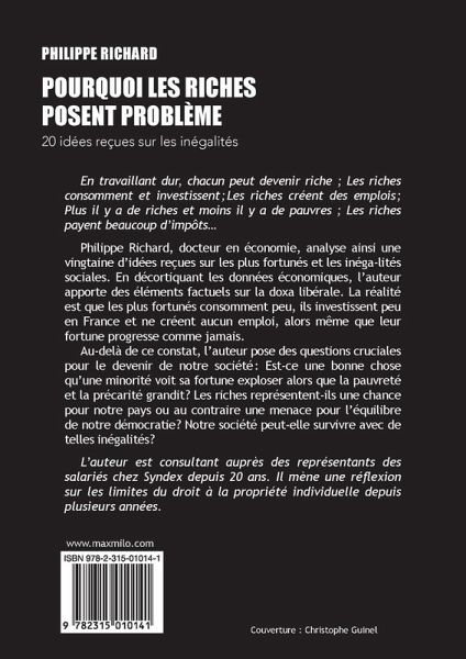 En travaillant dur, chacun peut devenir riche ; Les riches consomment et investissent¿;¿Les riches créent des emplois¿; Plus il y a de riches et moins il y a de pauvres ; Les riches payent beaucoup d'impôts...Philippe Richard, docteur en économie, analyse ainsi une vingtaine d'idées reçues sur les plus fortunés et les inéga-lités sociales. En décortiquant les données économiques, l'auteur apporte des éléments factuels sur la doxa libérale. La réalité est que les plus fortunés consomment peu, ils investissent peu en France et ne créent aucun emploi, alors même que leur fortune progresse comme jamais.Au-delà de ce constat, l'auteur pose des questions cruciales pour le devenir de notre société¿: Est-ce une bonne chose qu'une minorité voit sa fortune exploser alors que la pauvreté et la précarité grandit¿? Les riches représentent-ils une chance pour notre pays ou au contraire une menace pour l'équilibre de notre démocratie¿? Notre société peut-elle survivre avec de telles inégalités¿?