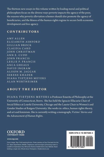 * Introduction, Diana Tietjens Meyers * Part 1: Thinking through the Meanings of Poverty * 1. Surviving Poverty, Claudia Card * 2. Poverty Knowledge, Coercion, and Social Rights: A Discourse Ethical Contribution to Social Epistemology, David Ingram * 3. Rethinking Coercion for a World of Poverty and Transnational Migration, Diana Tietjens Meyers * Part 2: Ethical Responses to Poverty * 4. Responsibility for Violations of the Human Right to Subsistence, Elizabeth Ashford * 5. Global Poverty, Decent Work, and Remedial Responsibilities: What the Developed World Owes to the Developing World and Why, Gillian Brock * 6. Trafficking in Human Beings: Partial Compliance Theory, Enforcement Failure, and Obligations to Victims, Leslie P. Francis and John Francis * 7. "Are My Hands Clean?" Responsibility for Global Gender Disparities, Alison Jaggar * Part 3: Promoting Development and Ensuring Agency * 8. Agency and Intervention: How (Not) to Fight Global Poverty, Ann Cudd * 9. Empowerment Through Self-Subordination?: Microcredit and Women's Agency, Serene J. Khader * 10. Paradoxes of Development: Rethinking the Right to Development, Amy Allen * Part 4: Transnational Transactions and Human Rights * 11. Poverty, Voluntariness, and Consent to Participate in Research, Alan Wertheimer * 12. Children's Rights, Parental Agency and the Case for Non-coercive Responses to Care Drain, Anca Gheus * 13. Human Rights and Global Wrongs: The Role of Human Rights Discourse in Responses to Trafficking, John Christman * Index