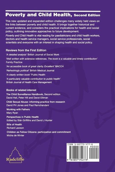 Part One: Definition and Measurement 1. Defining and Measuring Poverty 2. The Extent of Child Poverty 3. Measuring Child Health Part Two: Evidence of Child Health Inequalities 4. Historical Evidence Linking Poverty and Child Health in Developed Countries 5. Poverty and Child Health in Less Developed Countries 6. Poverty and Child Health in Developed Countries Part Three: The Causal Debate 7. "Race", Ethnicity, Poverty and Child Health 8. The Causal Debate 9. Mechanisms, Causal Models and Pathways Part Four: Social and Health Policy Implications 10. Social Policy Implications 11. Innovative Health Service Approaches and Future Research Directions 12. Conclusions
