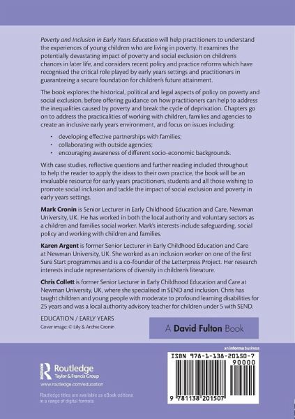 With case studies, reflective questions and further reading included throughout to help the reader to apply the ideas to their own practice, the book will be an invaluable resource for early years practitioners, students, and all those wishing to promote social inclusion and tackle the impact of social exclusion and poverty in early years settings.