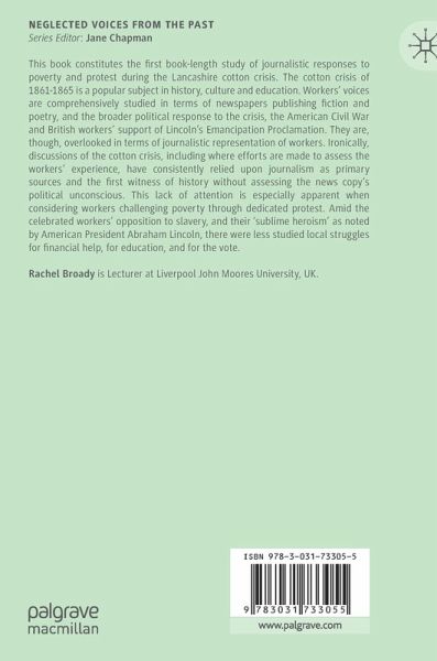 This book constitutes the first book-length study of journalistic responses to poverty and protest during the Lancashire cotton crisis. The cotton crisis of 1861-1865 is a popular subject in history, culture and education. Workers' voices are comprehensively studied in terms of newspapers publishing fiction and poetry, and the broader political response to the crisis, the American Civil War and British workers' support of Lincoln's Emancipation Proclamation. They are, though, overlooked in terms of journalistic representation of workers. Ironically, discussions of the cotton crisis, including where efforts are made to assess the workers' experience, have consistently relied upon journalism as primary sources and the first witness of history without assessing the news copy's political unconscious. This lack of attention is especially apparent when considering workers challenging poverty through dedicated protest. Amid the celebrated workers' opposition to slavery, and their 'sublime heroism' as noted by American President Abraham Lincoln, there were less studied local struggles for financial help, for education, and for the vote.