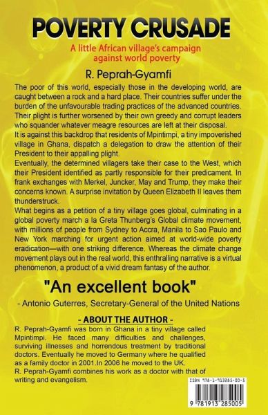 The poor of this world, especially those in the developing world, are caught between a rock and a hard place. Their countries suffer under the burden of the unfavourable trading practices of the advanced countries. Their plight is further worsened by their own greedy and corrupt leaders who squander whatever meagre resources is left at their disposal. It is against this backdrop that residents of Mpintimpi, a tiny impoverished village in Ghana, dispatch a delegation to draw the attention of their President to their appalling plight. Eventually, the determined villagers take their case to the West, which their President identified as partly responsible for their predicament. In frank exchanges with Merkel, Juncker, May and Trump, they make their concerns known. A surprise invitation by Queen Elizabeth II leaves them thunderstruck. What begins as a petition of a tiny village goes global, culminating in a global poverty march a la Greta Thunberg's Global climate movement, with millions of people from Sydney to Accra, Manila to Sao Paulo and New York marching for urgent action aimed at world-wide poverty eradication-with one striking difference. Whereas the climate change movement plays out in the real world, this enthralling narrative is a virtual phenomenon, a product of a vivid dream fantasy of the author.