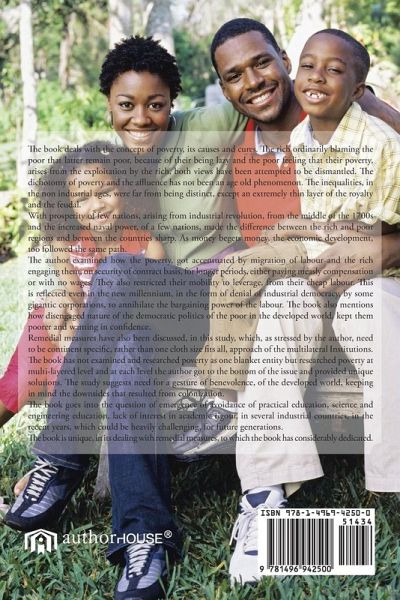 The book deals with the concept of poverty, its causes and cures. The rich ordinarily blaming the poor that latter remain poor, because of their being lazy and the poor feeling that their poverty, arises from the exploitation by the rich, both views have been attempted to be dismantled. The dichotomy of poverty and the affluence has not been an age old phenomenon. The inequalities, in the non industrial ages, were far from being distinct, except an extremely thin layer of the royalty and the feudal. With prosperity of few nations, arising from industrial revolution, from the middle of the 1700s and the increased naval power, of a few nations, made the difference between the rich and poor regions and between the countries sharp. As money begets money, the economic development, too followed the same path. The author examined how the poverty, got accentuated by migration of labour and the rich engaging them, on security of contract basis, for longer periods, either paying measly compensation or with no wages. They also restricted their mobility to leverage, from their cheap labour. This is reflected even in the new millennium, in the form of denial of industrial democracy, by some gigantic corporations, to annihilate the bargaining power of the labour. The book also mentions how disengaged nature of the democratic politics of the poor in the developed world, kept them poorer and wanting in confidence. Remedial measures have also been discussed, in this study, which, as stressed by the author, need to be continent specific, rather than one cloth size fits all, approach of the multilateral Institutions. The book has not examined and researched poverty as one blanket entity but researched poverty at multi-layered level and at each level the author got to the bottom of the issue and provided unique solutions. The study suggests need for a gesture of benevolence, of the developed world, keeping in mind the downsides that resulted from colonization. The book goes into the question of emergence of avoidance of practical education, science and engineering education, lack of interest in academic rigour, in several industrial countries, in the recent years, which could be heavily challenging, for future generations. The book is unique, in its dealing with remedial measures, to which the book has considerably dedicated.