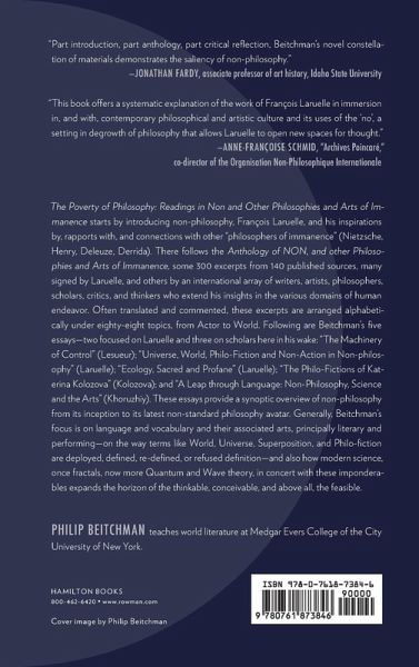 The Poverty of Philosophy: Readings in Non and Other Philosophies and Arts of Imminence includes an 8,000 word overture, "Poverty of Philosophy" introducing non-philosophy and its progenitor, François Laruelle.