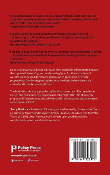 Poverty Propaganda debunks many popular myths and misconceptions about poverty and its prevalence, causes and consequences. In particular, it highlights the role of 'poverty propaganda' in sustaining class divides in perpetuating poverty and disadvantage in contemporary Britain.