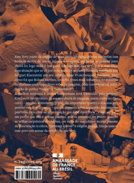 Este livro parte da análise de uma única situação, porém exemplar: um homem morre de morte injusta e violenta; mulheres se juntam para chorá-lo; logo mais é um povo em lágrimas que se reúne a elas. Ora, essa situação que se vê por toda parte foi esplendidamente retratada por Serguei Eisenstein em seu célebre filme O encouraçado Potemkin. Mas como foi que Roland Barthes, uma das vozes mais influentes no domínio do discurso contemporâneo sobre as imagens, pôde considerar tal construção do pathos vulgar e lamentável? A melhor resposta à crítica barthesiana será fornecida pelo próprio Eisenstein na estrutura de sua sequência de imagens, assim como no discurso - imenso, abundante, genial, tão importante quanto o dos maiores pensadores de seu tempo - que ele sustenta sobre a questão das imagens patéticas. Descobre-se uma emoção que sabe dizer nós, e não só eu, um pathos que não é apenas passivo, mas se constitui em práxis: quando as velhas carpideiras de Odessa, em volta do marinheiro morto, passam da lamentação à cólera, prestam queixa e exigem justiça, fazem nascer esse povo em armas da revolução que vem.