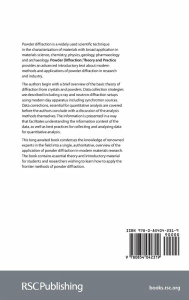 Powder diffraction is a widely used scientific technique in the characterization of materials with broad application in materials science, chemistry, physics, geology, pharmacology and archaeology. Powder Diffraction Theory and Practice provides an advanced introductory text about modern methods and applications of powder diffraction in research and industry. The authors begin with a brief overview of the basic theory of diffraction from crystals and powders. Data collection strategies are described including x-ray, neutron and electron diffraction setups using modern day apparatus including synchrotron sources. Data corrections, essential for quantitative analysis are covered before the authors conclude with a discussion of the analysis methods themselves. The information is presented in a way that facilitates understanding the information content of the data, as well as best practices for collecting and analyzing data for quantitative analysis. This long awaited book condenses the knowledge of renowned experts in the field into a single, authoritative, overview of the application of powder diffraction in modern materials research. The book contains essential theory and introductory material for students and researchers wishing to learn how to apply the frontier methods of powder diffraction.