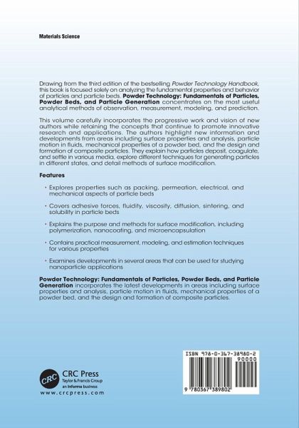 Drawing from the third edition of the bestselling Powder Technology Handbook, this self-contained volume is focused solely on analyzing the fundamental properties and behavior of particles and particle beds. It explains how particles deposit, coagulate, and settle in various media, explores different techniques for generating particles in different