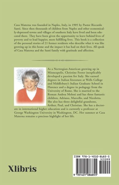 Casa Materna was founded in Naples, Italy, in 1905 by Pastor Riccardo Santi. Since then thousands of children from Naples and other economically-depressed towns and villages of southern Italy have lived and been educated there. They have been given the opportunity to leave behind lives of poverty and to lead happier, more fulfilling lives. This book is a collection of the personal stories of 21 former residents who describe what it was like growing up in this home and the impact it has had on their lives. All speak of Casa Materna and the Santi family with gratitude and affection.
