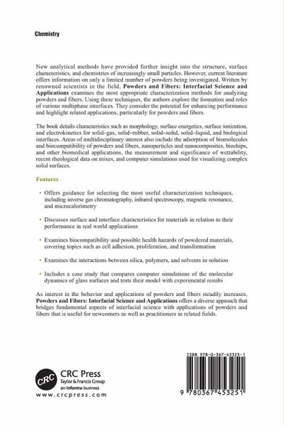 Written by renowned scientists in the field, Powders and Fibers: Interfacial Science and Applications offers guidance for selecting the most appropriate characterization methods for analyzing powders and fibers. Using these techniques, the authors explore the behavior of solid-gas, solid-rubber, solid-solid, solid-liquid, and biological interfaces. They consider the potential for enhancing performance and highlight related applications. A case study demonstrates the use of computer simulations for modeling glass surfaces. Topics also include biocompatibility, nanoparticles and nanocomposites, rheological properties, biochips, and other biomedical applications.