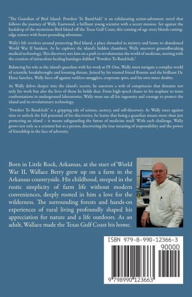 "The Guardian of Bird Island: Powders To BandAids" is an exhilarating action-adventure novel that follows the journey of Wally Eastwood, a brilliant young scientist with a secret mission. Set against the backdrop of the mysterious Bird Island off the Texas Gulf Coast, this coming-of-age story blends cutting-edge science with heart-pounding adventure. Wally's life revolves around protecting Bird Island, a place shrouded in mystery and home to abandoned World War II bunkers. As he explores the island's hidden chambers, Wally uncovers groundbreaking medical technology. This discovery sets him on a path to revolutionize the world of medicine, starting with the creation of miraculous healing bandages dubbed "Powders To BandAids." Balancing his role as the island's guardian with his work at FF-One, Wally must navigate a complex world of scientific breakthroughs and looming threats. Joined by his trusted friend Ronnie and the brilliant Dr. Elena Sanchez, Wally faces off against ruthless smugglers, corporate spies, and his own inner doubts. As Wally delves deeper into the island's secrets, he uncovers a web of conspiracies that threaten not only his work but also the lives of those he holds dear. From high-speed chases in his seaplane to tense confrontations in underground laboratories, Wally must use all his ingenuity and courage to protect the island and its revolutionary technology. "Powders To BandAids" is a gripping tale of science, secrecy, and self-discovery. As Wally races against time to unlock the full potential of his discoveries, he learns that being a guardian means more than just protecting an island - it means safeguarding the future of medicine itself. With each challenge, Wally grows not only as a scientist but as a person, discovering the true meaning of responsibility and the power of friendship in the face of adversity.